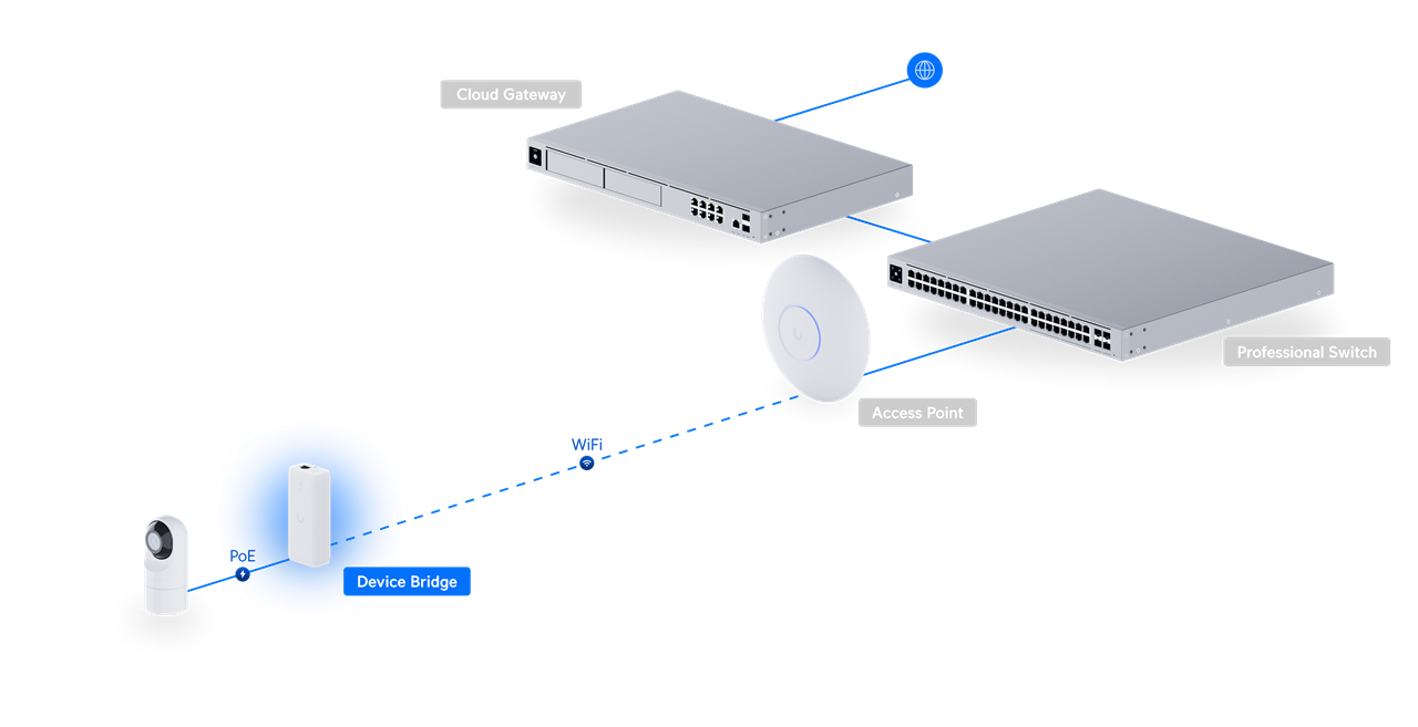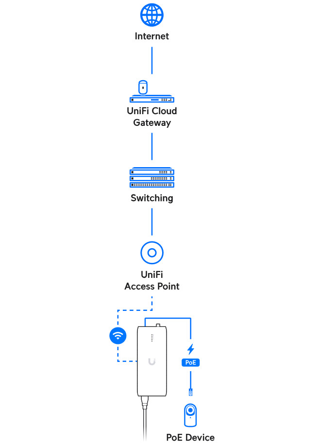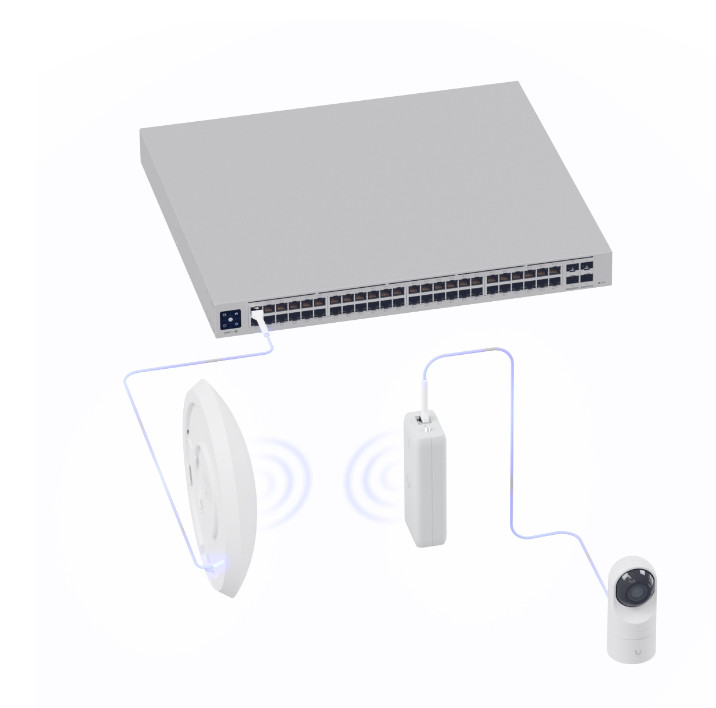 Plug-and-play, wireless bridging PoE adapter with integrated UniFi WiFi Auto-Link.
