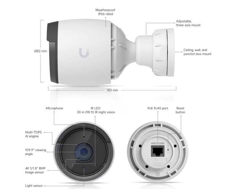 Wall, ceiling, pole mount (Included) Junction box, angled base (Optional)